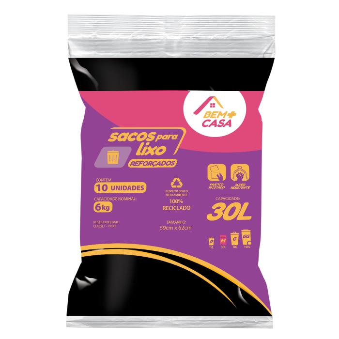 BEM+CASA SACO PARA LIXO ALMOFADA 30L PRETO 25U